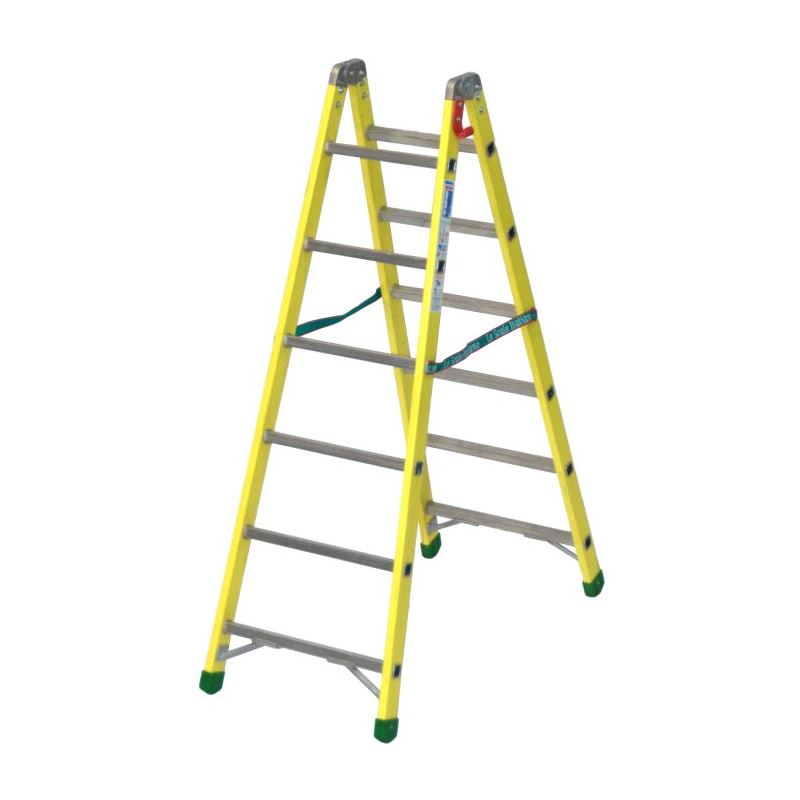 - Escalera en fibra de resina con doble subida y peldaños cuadrados 30x30 mm