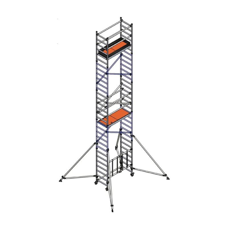 • Echafaudage roulant professionnel en aluminium. Longueur 156 cm - largeur 73 cm.